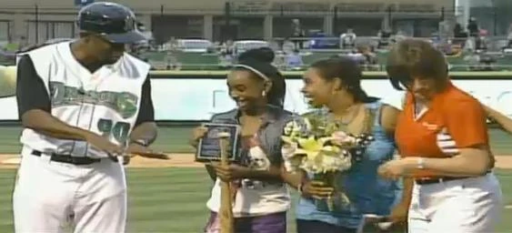 Previous Dragons manager DeShields with fans during a home game against the Lake County Captains